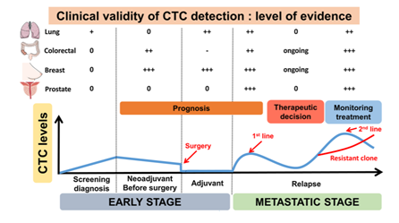 The National Cancer Institute (NCI) defines “liquid biopsy” as a test done on a sample of blood, urine, or other bodily fluid to look for cancer cells from a tumor or small pieces of DNA, RNA, or other molecules released by tumor cells into a person’s body fluids. Liquid biopsies are non-invasive blood tests since circulating tumor cells (CTCs) and cell-free tumor DNA (cfDNA) fragments are shed into the bloodstream from existing tumors and can be detected in blood.1,2 The presence of CTCs can be indicative of metastatic disease.4