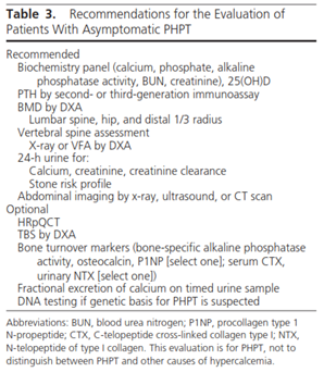 - Bilezikian JP, Brandi ML, Eastell R, et al. Guidelines for the management of asymptomatic primary hyperparathyroidism: summary statement from the Fourth International Workshop. J Clin Endocrinol Metab. Oct 2014;99(10):3561-9. doi:10.1210/jc.2014-1413