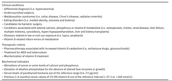 Note 1: Indications for serum measurement of 25-hydroxyvitamin D are as follows: